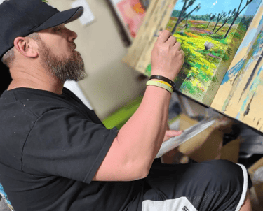 David captures the quiet beauty of nature through vibrant acrylic landscapes that invite you to pause and reflect.